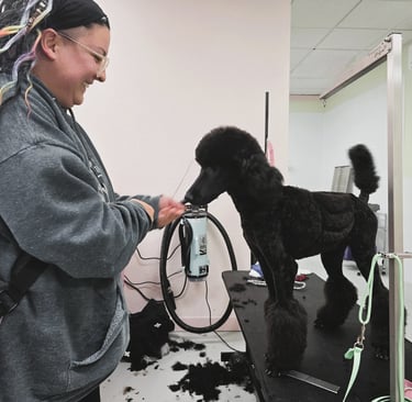Whether you're starting fresh with a new puppy, building better everyday manners, or helping your dog feel calmer and more confident at the grooming table, we’re here for you.